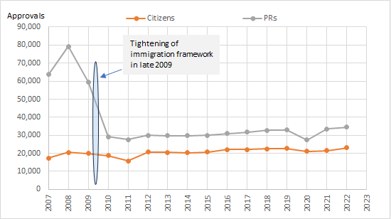 Inside Singapore’s World-Class Education System: The Secrets Behind Its Success “Adding Value” to Singapore: What ICA Looks For (and How You Can Show It) class=””>Chart 1: ICA approvals of Singapore PRs and Citizens