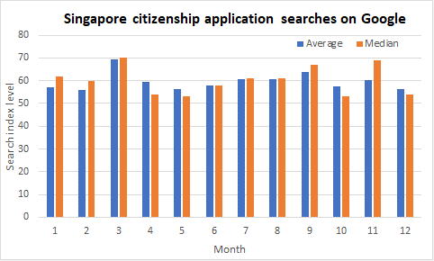 Again, using the last 10 years of data from Google, we think the best time to make submissions for Singapore citizenship applications is during May, Jun, Nov, and January. Whereas, the least favourable months for submissions are potentially around April, October and December.